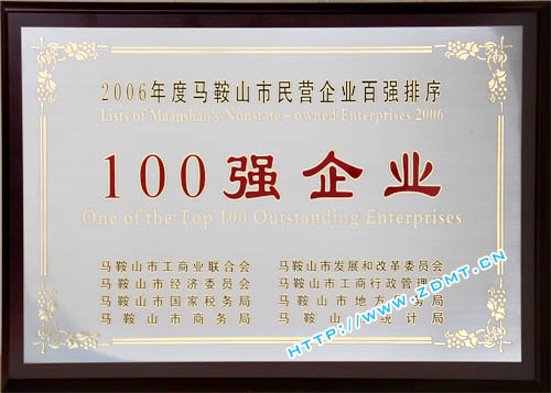 近期,由馬鞍山市工商業聯合會及馬鞍山市總商會聯合主辦,市發改委,經委,工商局,國稅局,地稅局,商務局,統計局共同組織開展的2006年度全市民營企業百強排序工作已落下帷幕。我公司入圍2006年馬鞍山市民營企業營業收入總額100及市民營企業納稅總額100,也是我公司連續三年獲此殊榮。