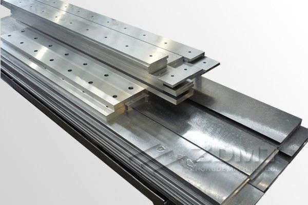 該刀片適用于液壓剪板機,液壓剪板機的刀片一般有9CrSI、6CrW2Si、Cr12MoV等幾種材質。